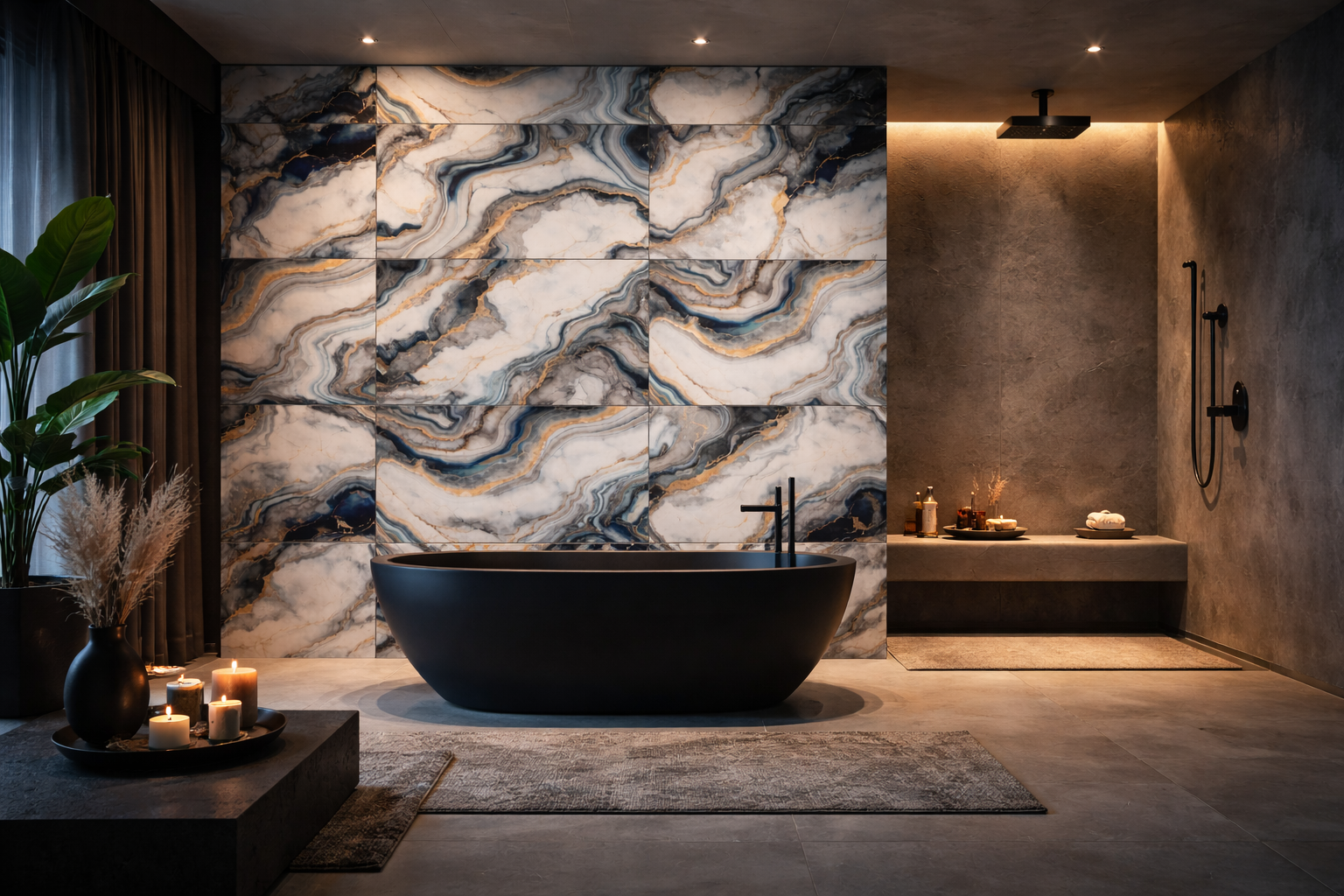 For a truly seamless look, use a white or colour-matched grout to minimise joint visibility and enhance the large-format effect.