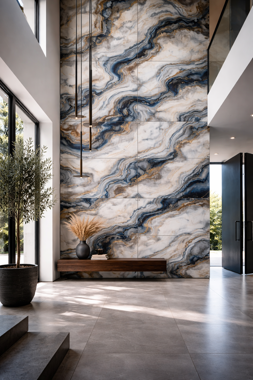 Alba thrives in spaces where light is your main design feature. Pair it with brushed brass or matt black fittings for contrast, or combine it with warm wood cabinetry to soften its brilliance. In bathrooms, install floor-to-ceiling for a spa-hotel effect. In kitchens, use it as a full splashback wall to bounce light across the room and elevate smaller layouts.