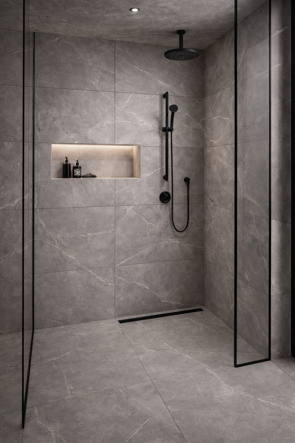 A contemporary matt grey marble-effect porcelain tile in a large 60×120 format, designed to create bold, seamless walls and floors in modern UK interiors.
