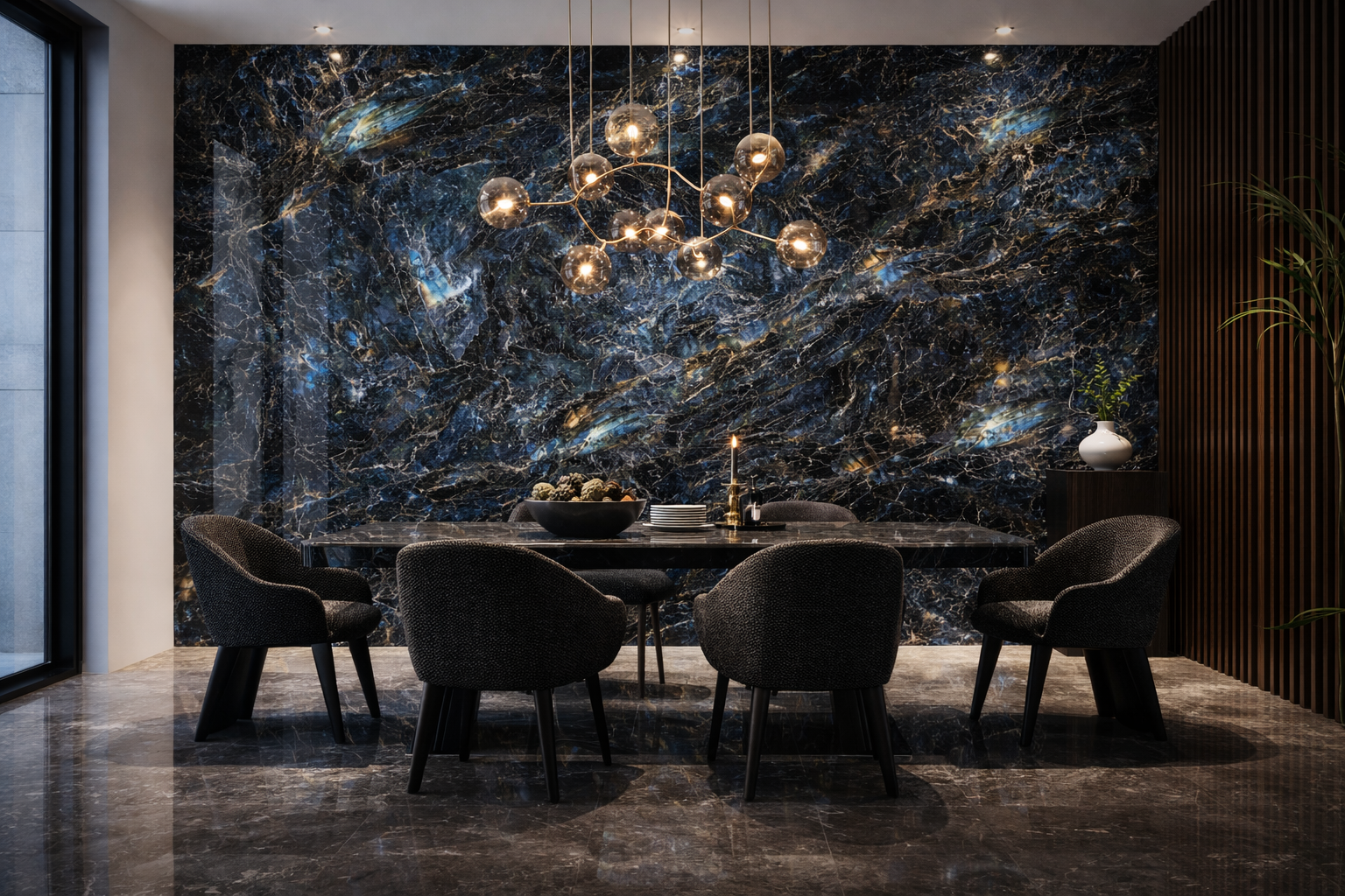 In commercial settings such as boutique hotels, salons or reception spaces, Azurea delivers immediate visual impact and a sense of premium sophistication.
