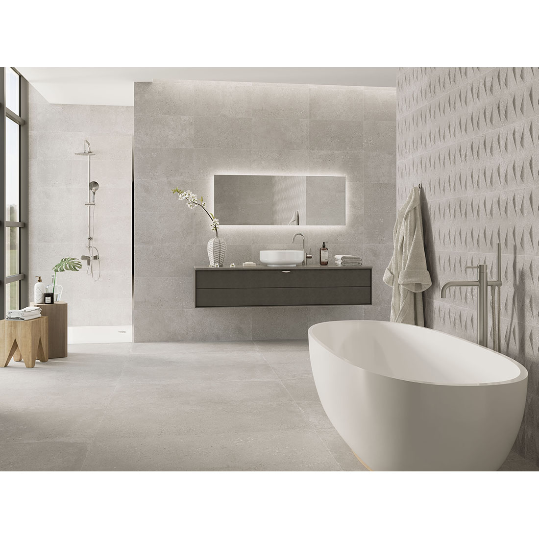 Marais Grain is a 59.2×59.2 cm grey-toned porcelain tile with a matt finish, suitable for walls and floors. With 32 unique faces, it delivers subtle variation and timeless elegance to modern interiors.