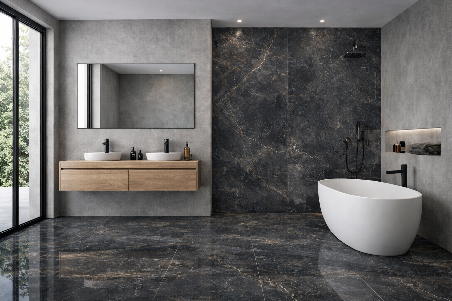 Obsidian brings the drama of black marble into contemporary interiors with the durability of porcelain, creating spaces that feel bold, refined and unmistakably architectural.
