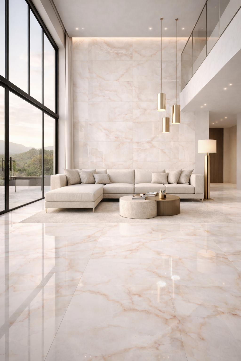 A refined 60×120cm blush onyx-effect porcelain tile available in matt and polished finishes, designed to bring warm mineral elegance and contemporary luxury to UK interiors.