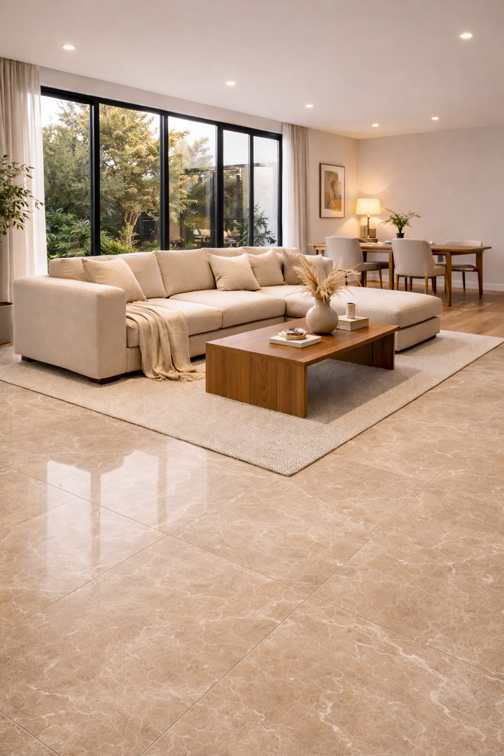 Polished finish enhances light and depth