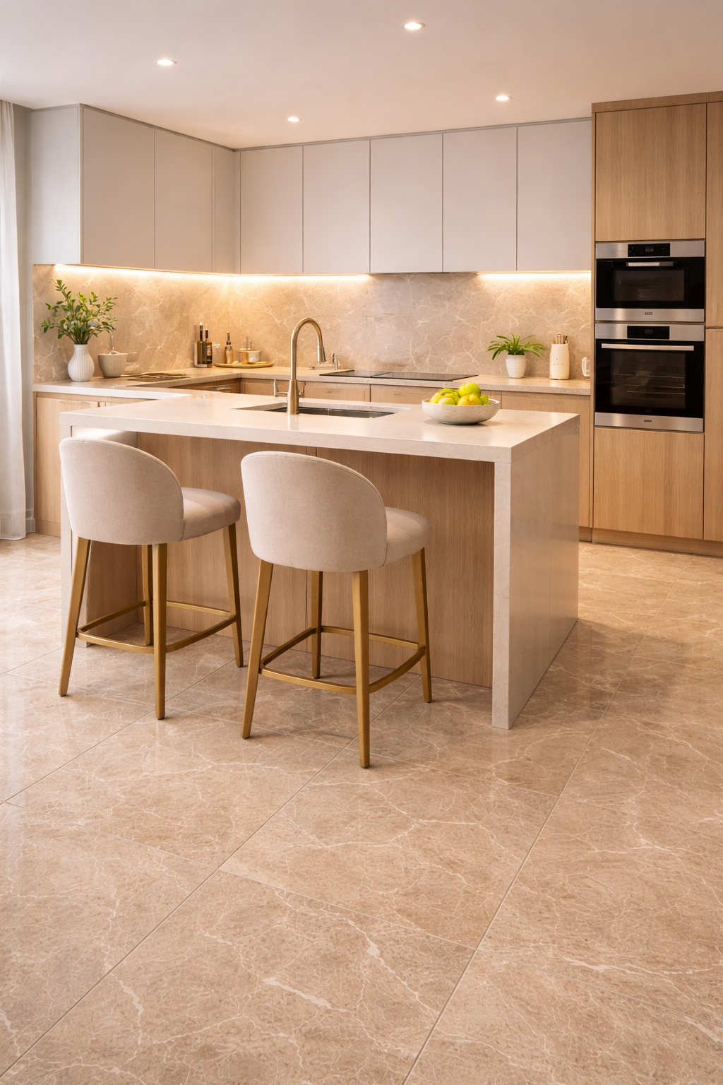 The 30×60cm size works beautifully for vertical applications, feature walls and smaller layouts, while the 60×60cm format creates a more expansive, seamless floor plane with reduced visual interruption. Together, these sizes allow for flexible design schemes across bathrooms, kitchens, open-plan living areas and statement commercial interiors.