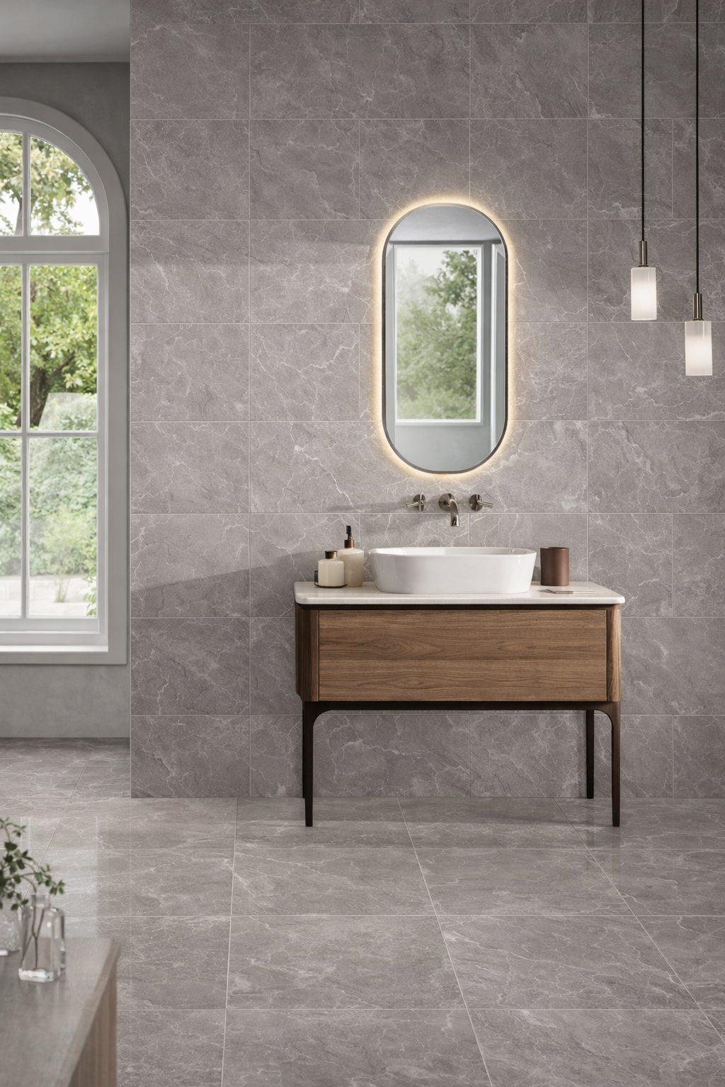 Spectra Grisano captures the calm sophistication of grey marble while delivering the practicality and durability of porcelain, making it a versatile choice for modern British interiors.